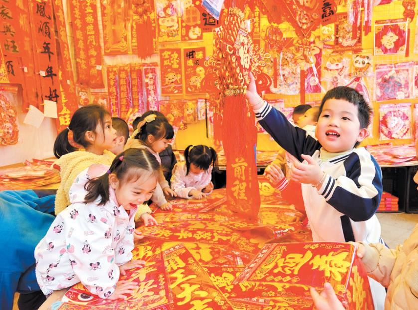 ????1月22日,在蓬江區(qū)金匯廣場迎春花市,一群萌娃吸引了大家的注意。當(dāng)天,該花市附近嘉福幼兒園的孩子們在老師帶領(lǐng)下逛迎春花市,感受傳統(tǒng)節(jié)日氛圍。小朋友們看年花年桔,還在揮春店“團(tuán)購”自己喜歡的春節(jié)裝飾畫、飾品,老板也很豪爽地給了這群小顧客大優(yōu)惠。萌娃們在離開時紛紛向老板大喊“謝謝老板”“恭喜發(fā)財”“老板很帥”。