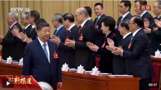 3月8日上午9時,十四屆全國人大三次會議第二次全體會議在人民大會堂舉行。中共中央總書記、國家主席、中央軍委主席習近平等黨和國家領導人步入會場,出席會議。