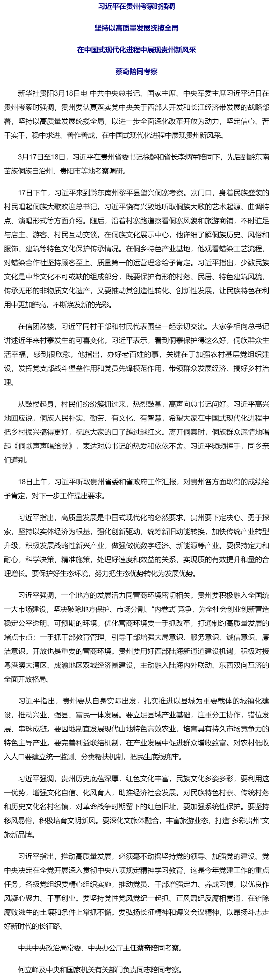 習(xí)近平在貴州考察時(shí)強(qiáng)調(diào) 堅(jiān)持以高質(zhì)量發(fā)展統(tǒng)攬全局 在中國(guó)式現(xiàn)代化進(jìn)程中展現(xiàn)貴州新風(fēng)采