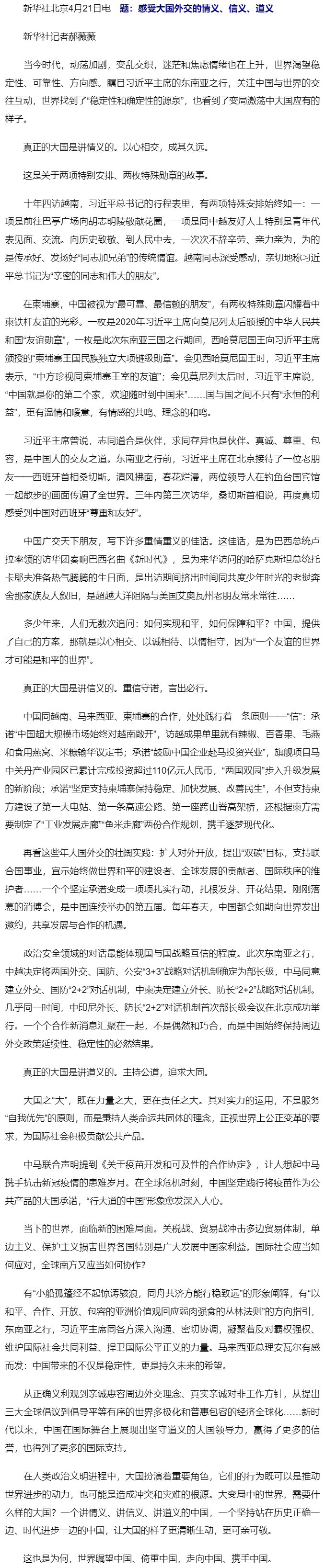 記者手記|感受大國(guó)外交的情義、信義、道義