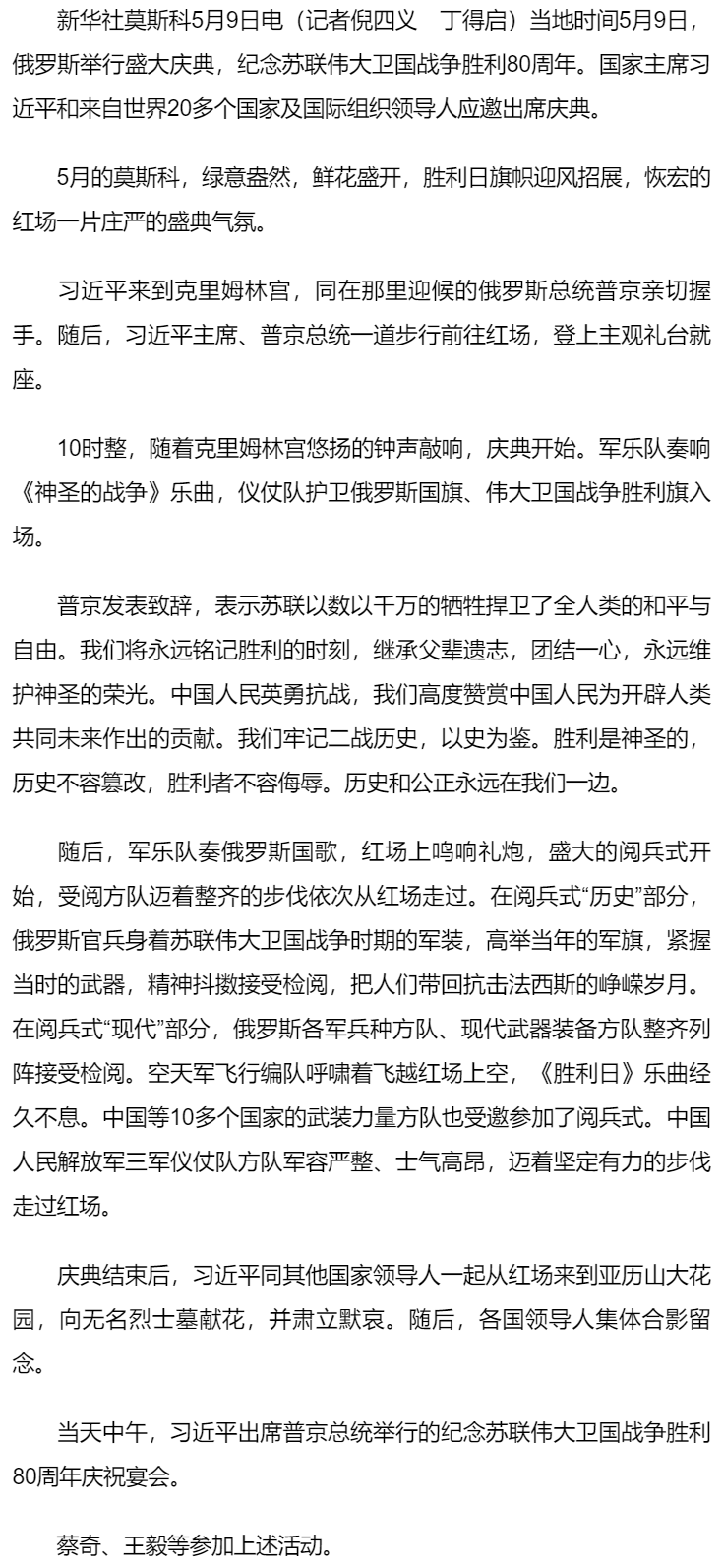 習(xí)近平出席俄羅斯紀(jì)念蘇聯(lián)偉大衛(wèi)國(guó)戰(zhàn)爭(zhēng)勝利80周年慶典