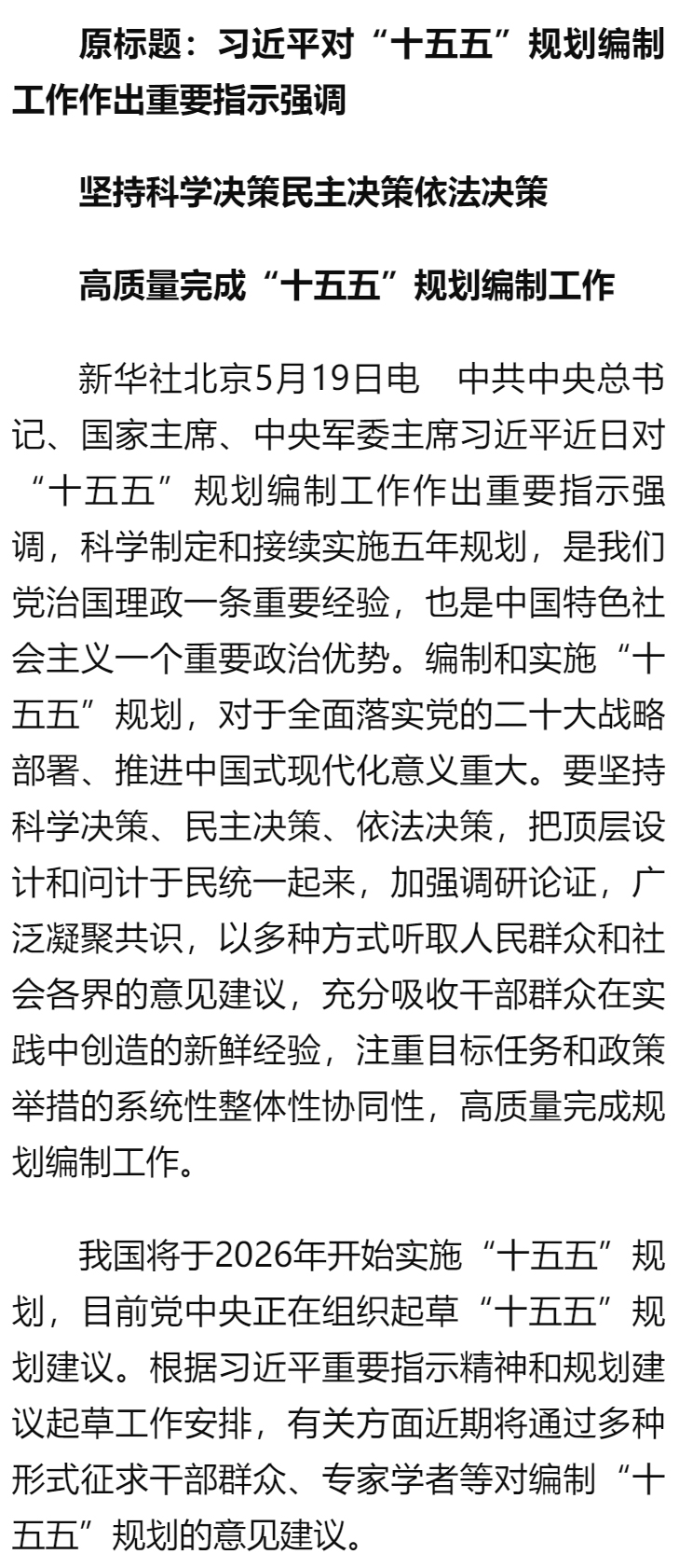 習(xí)近平:堅(jiān)持科學(xué)決策民主決策依法決策 高質(zhì)量完成“十五五”規(guī)劃編制工作