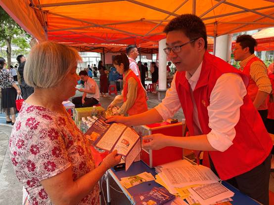 7月3日,平安人壽江門中心支公司聯(lián)合江門地區(qū)各專業(yè)子公司,走進(jìn)象山社區(qū),設(shè)立公益攤位,向往來戶外勞動(dòng)者和社區(qū)居民派發(fā)清涼飲品、礦泉水等愛心物資和宣傳折頁,講解金融反詐知識(shí),工作人員還準(zhǔn)備了金融知識(shí)問答環(huán)節(jié)吸引眾多居民參與,活動(dòng)獲得社區(qū)一致好評(píng)。
