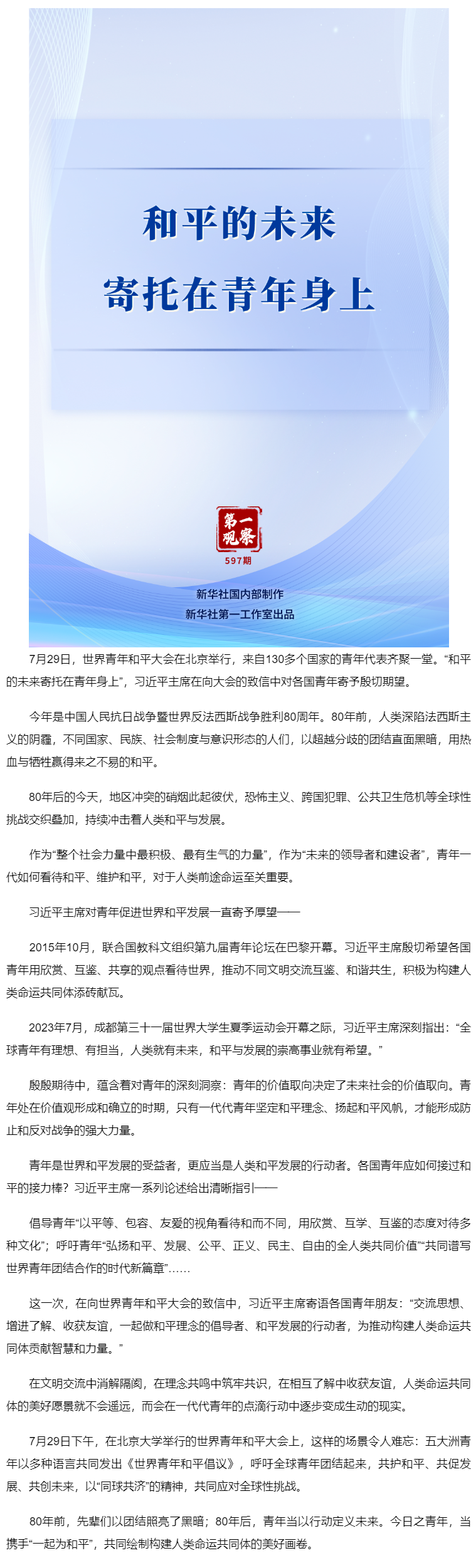 第一觀察|和平的未來寄托在青年身上