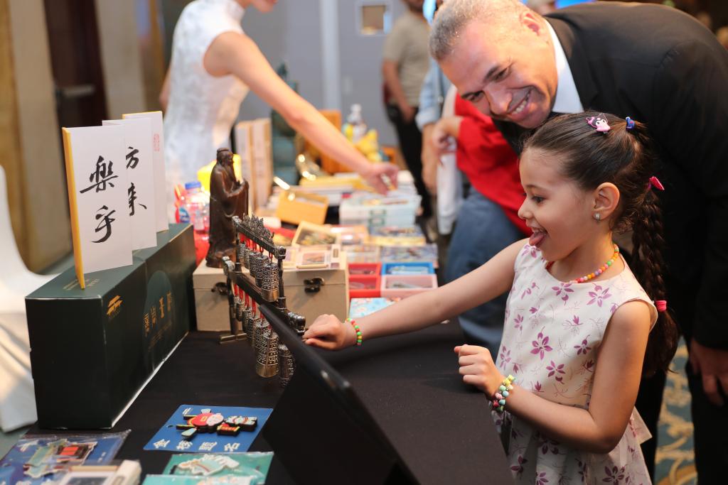 6月12日,一名女孩在埃及開羅舉辦的“茶和天下”尼羅雅集活動(dòng)現(xiàn)場(chǎng)體驗(yàn)“遇見孔子”非遺文創(chuàng)產(chǎn)品。新華社記者 隋先凱 攝