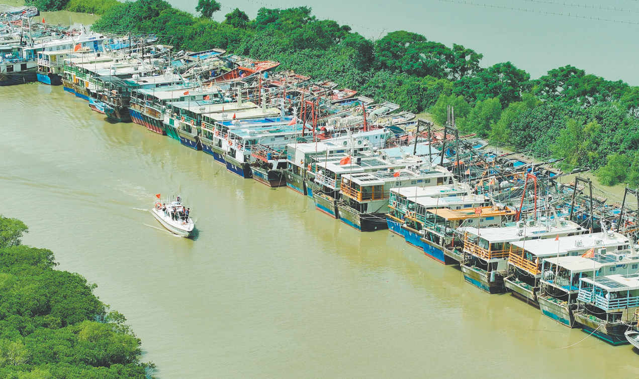 全市逾7000艘涉漁船舶已于9月22日全部回港。圖為漁船在臺山市汶村鎮(zhèn)橫山漁港避風(fēng)。臺海綜供圖
