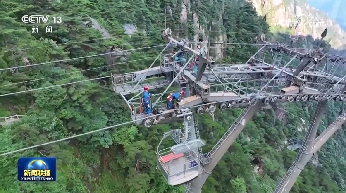 在黃山風景區(qū),索道檢修工不間斷巡視云端索道,確保索道運行正常。環(huán)衛(wèi)工人全員在崗,投入到各路段和懸崖外圍保潔工作。
