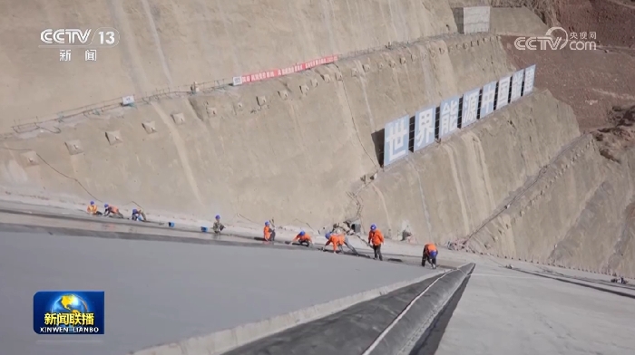 新疆大石峽水利樞紐工程現(xiàn)場,工人們在相當于80層樓高的混凝土石壩上作業(yè)。這項民生工程建成后,年生產(chǎn)清潔電能可滿足65萬戶家庭一年的用電需求。