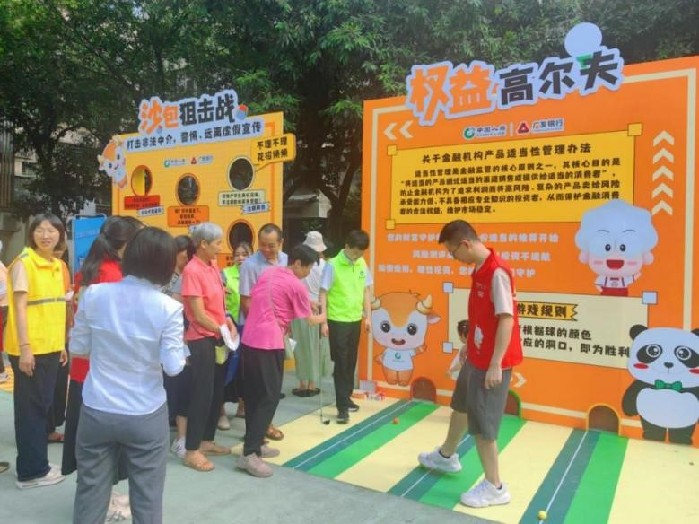 活動(dòng)現(xiàn)場還精心設(shè)置了三大體驗(yàn)區(qū),構(gòu)成了一個(gè)集教育、互動(dòng)、服務(wù)于一體的迷你創(chuàng)意市集?!皺?quán)益高爾夫”“沙包狙擊戰(zhàn)”兩大游戲吸引眾多銀齡客戶參與。在“權(quán)益高爾夫”中,參與者通過推桿進(jìn)洞學(xué)習(xí)金融消費(fèi)者八大權(quán)益;“沙包狙擊”則以擊打“非法集資”“高息誘惑”等標(biāo)靶的方式,幫助老年人識(shí)別詐騙套路,現(xiàn)場歡聲笑語不斷。