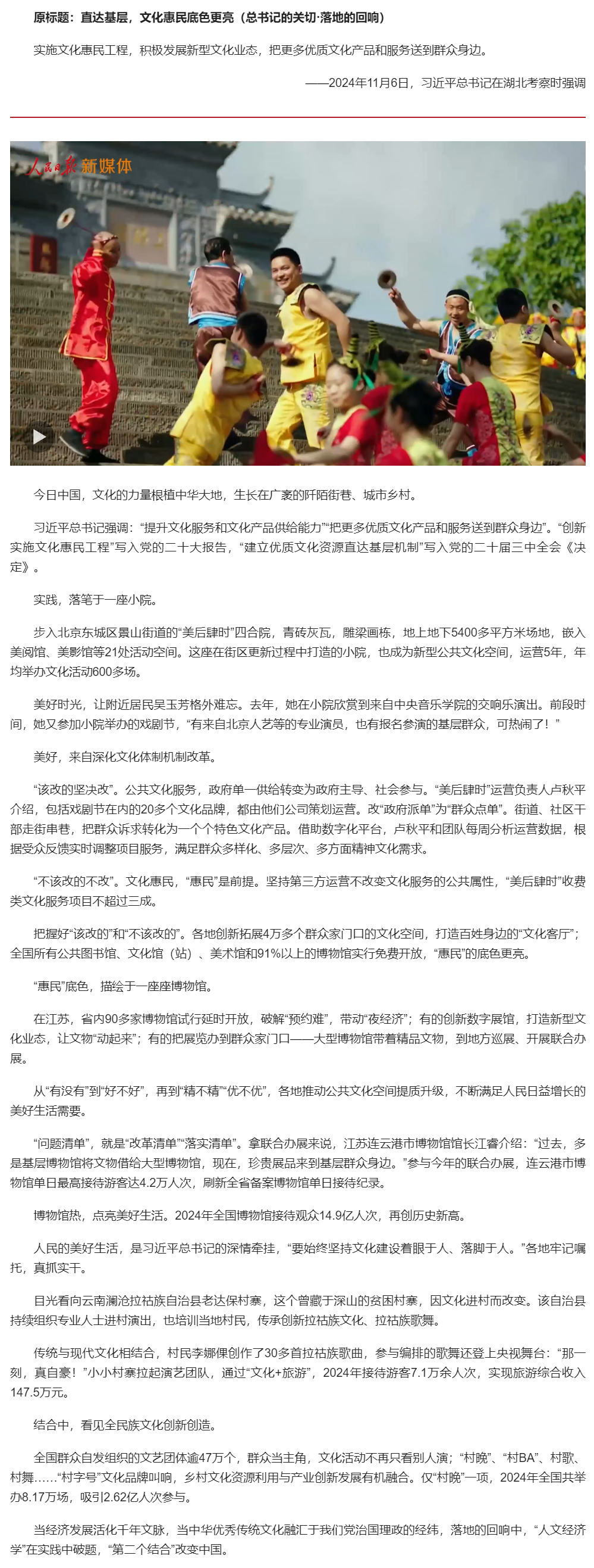 總書記的關(guān)切·落地的回響 | 直達(dá)基層,文化惠民底色更亮