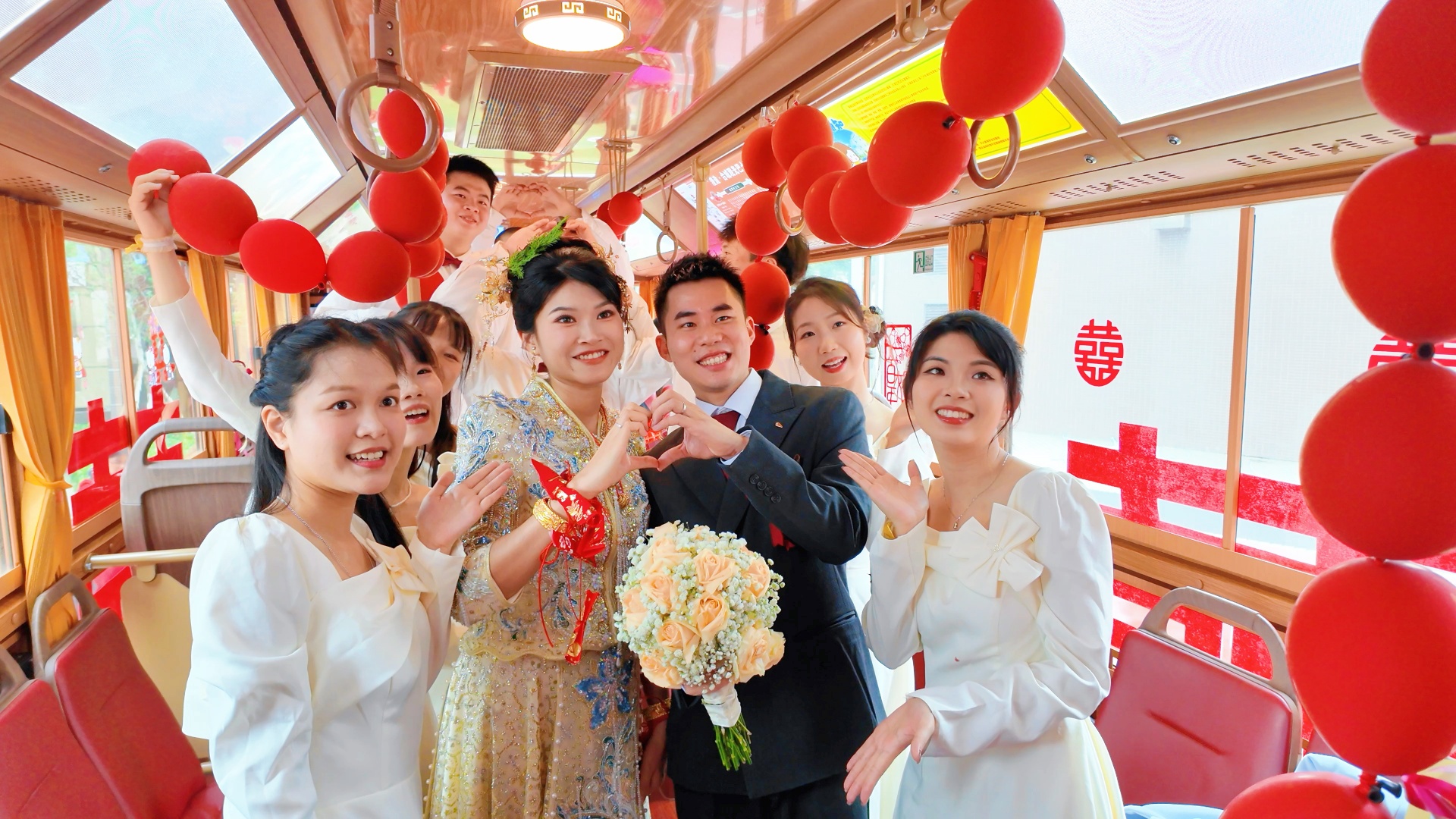 據(jù)悉,此次選擇用“新寧號(hào)”觀光巴士接親的是新郎李毅華和新娘黃婉欣,他們用這輛“鐺鐺車(chē)”迎接自己的幸福時(shí)刻?!坝糜^光巴士作為婚車(chē),不僅符合文明環(huán)保的理念,還能讓眾多親友一同參與婚禮,共同見(jiàn)證我們的幸福,這樣的方式更有意義!”李毅華說(shuō)。黃婉欣也表示,和親朋好友一起乘坐這輛特別的婚車(chē),一路上歡聲笑語(yǔ)不斷、溫馨快樂(lè),感覺(jué)就像過(guò)年一樣,讓她對(duì)這場(chǎng)婚禮留下了深刻、美好的印象。