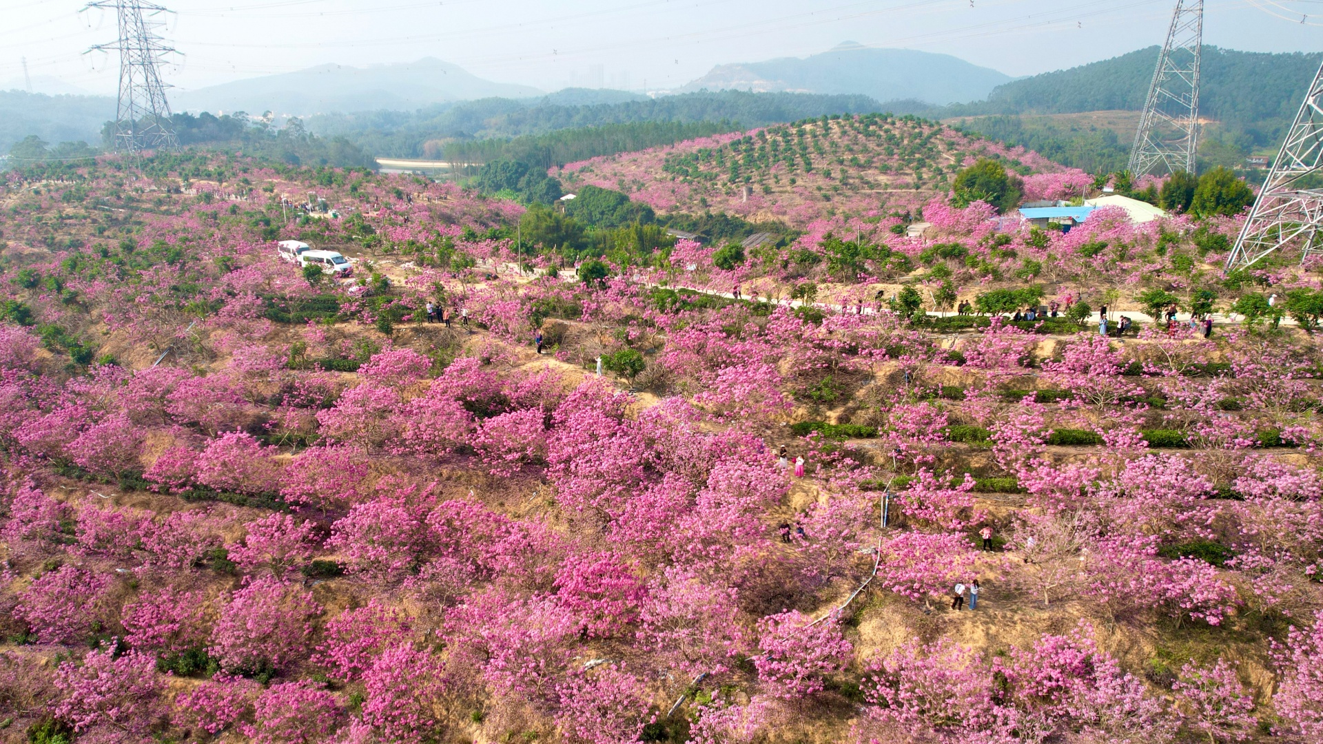 12月24日,鶴山萊蘇(鴻園)山水人家旅游景區(qū)內(nèi),500余畝紫花風(fēng)鈴木迎來(lái)最佳觀賞期。雖是工作日,但仍有不少?gòu)V州、惠州等地的游客專(zhuān)程驅(qū)車(chē)前來(lái),沿著觀景步道漫步、拍照打卡。