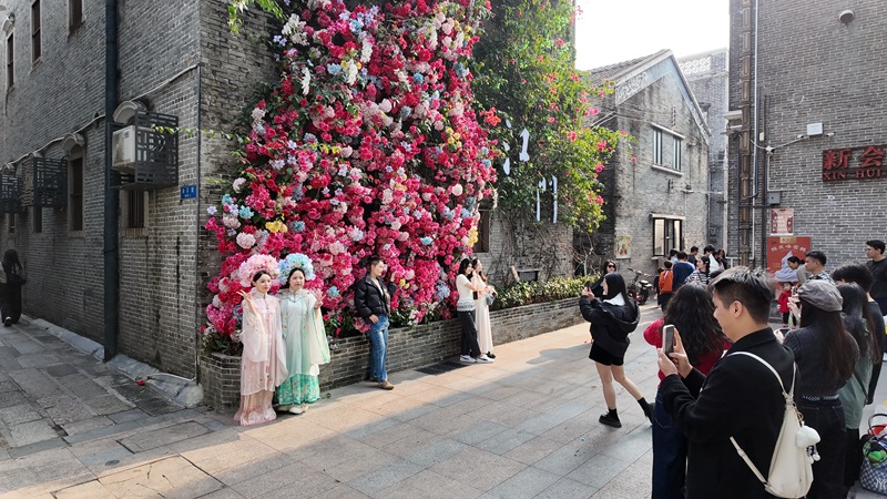 市民游客在長堤歷史文化街區(qū)打卡拍照。任佳燕 攝