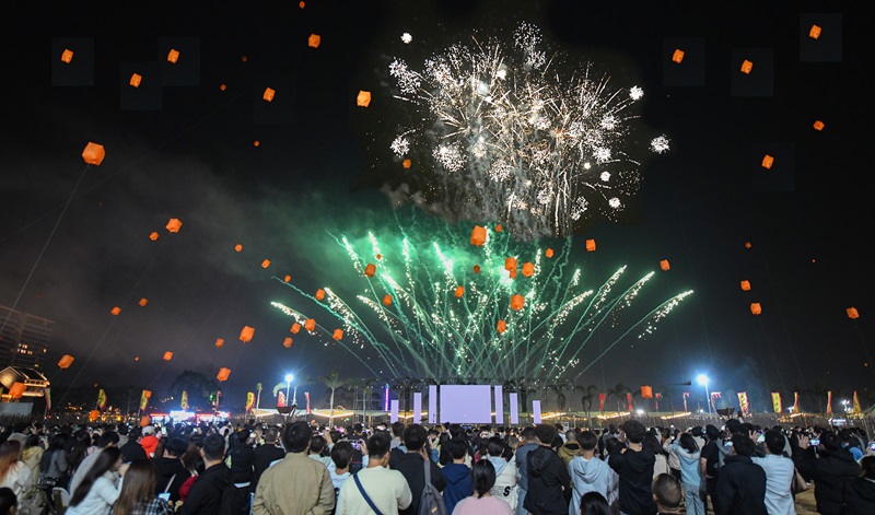 ????2025年12月31日晚,古勞水鄉(xiāng)迎來年度高光時刻——跨年煙花狂歡夜,當(dāng)晚入園人次突破2萬。當(dāng)天19時至24時,電音派對激情炸場,動感節(jié)奏點燃全場氛圍;篝火晚會溫情圍聚,歡聲笑語暖意融融;千盞電子孔明燈冉冉升空,承載著人們對新年的期許飛向夜空。兩場大型煙花秀分別于21時與24時璀璨綻放,絢爛光影映照水鄉(xiāng)夜空,數(shù)萬名市民游客攜手倒數(shù),共同迎接2026年的到來。同期舉辦的美食文化節(jié),讓市民游客在歡樂氛圍中盡享地道嶺南風(fēng)味。