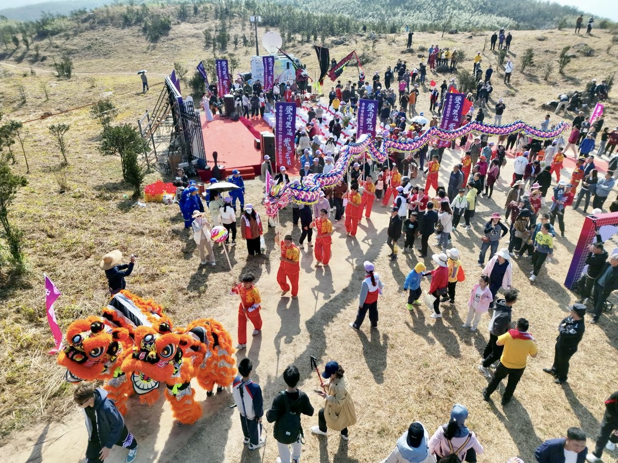 ????隨后,徒步登山環(huán)節(jié)開始。在龍獅隊伍引領(lǐng)下,游客們滿懷熱情地踏上登山步道,沿著群山疊翠間的蜿蜒路徑向山頂行進(jìn),沿途沉浸式感受自然野趣。