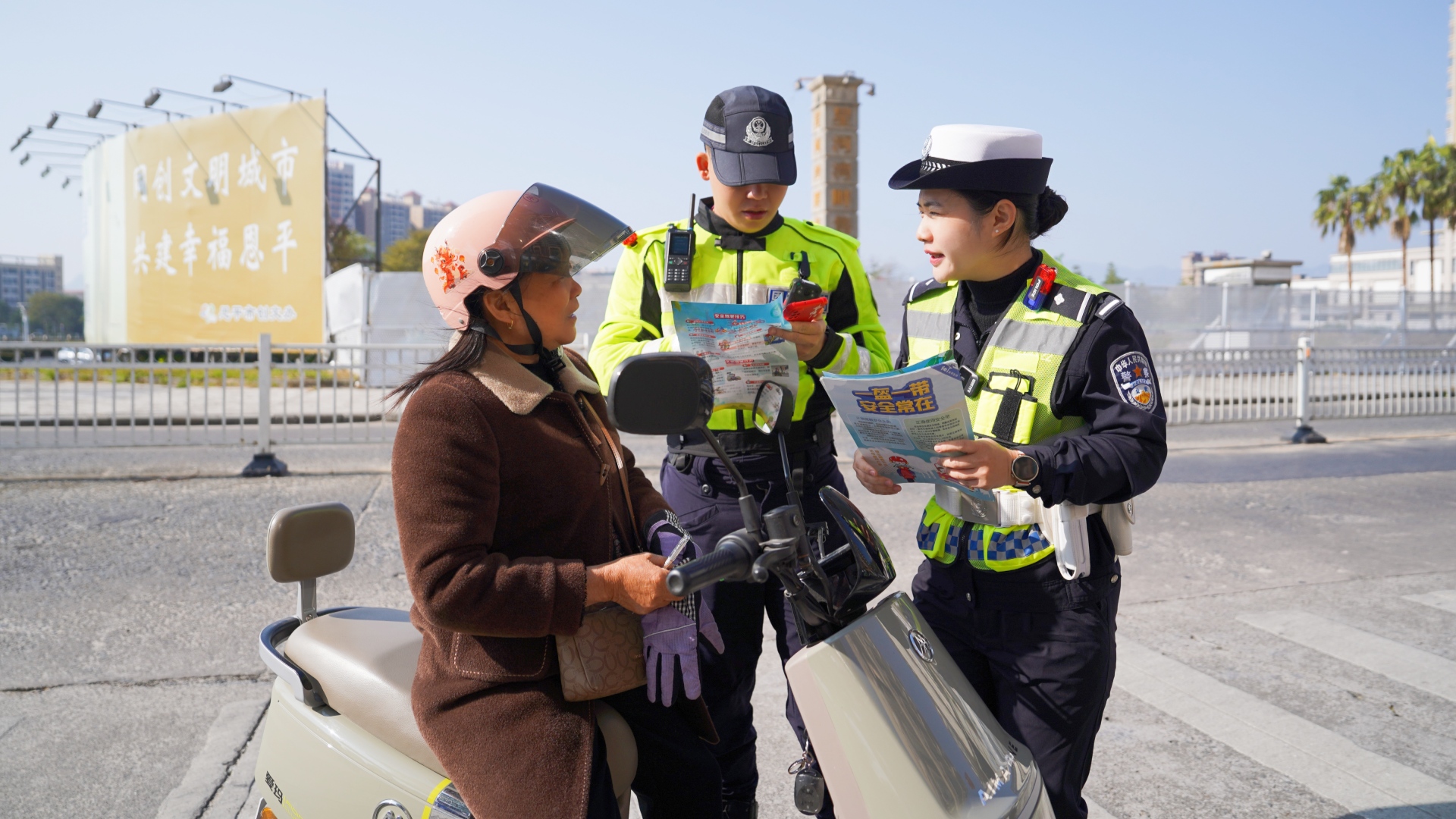 此外,交警在路口設(shè)立教育點,組織電動自行車、摩托車駕駛?cè)私邮墁F(xiàn)場教育。通過宣傳展架圖文展示、派發(fā)宣傳單張等方式,進(jìn)行“一對一”或“小課堂”式講解,開展針對性警示教育,使其直觀認(rèn)識違法行為的現(xiàn)實危害。