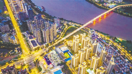江門成為省內(nèi)第7座進(jìn)入“供電可靠性1小時(shí)朋友圈”的城市。圖為江門主城區(qū)的夜晚燈火璀璨。 蘇振帆 攝