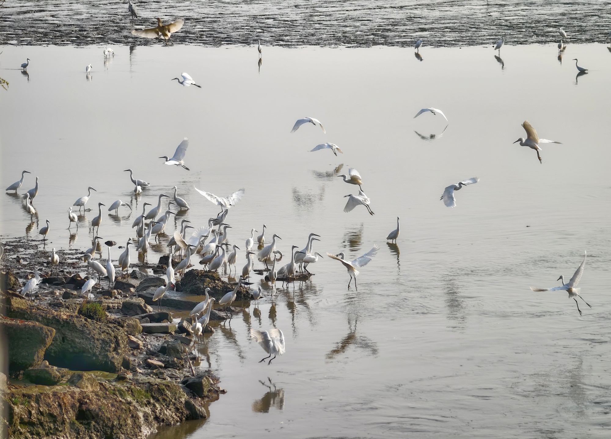 ????江門地處東亞—澳大利西亞候鳥遷徙路線,坐擁小鳥天堂國(guó)家濕地公園、孔雀湖國(guó)家濕地公園等多處棲息地與觀鳥勝地。每年11月至次年4月,都有大批候鳥來此越冬。眼前這幅“鷺鳥覓食圖”,正是江門生態(tài)持續(xù)向好的生動(dòng)寫照。