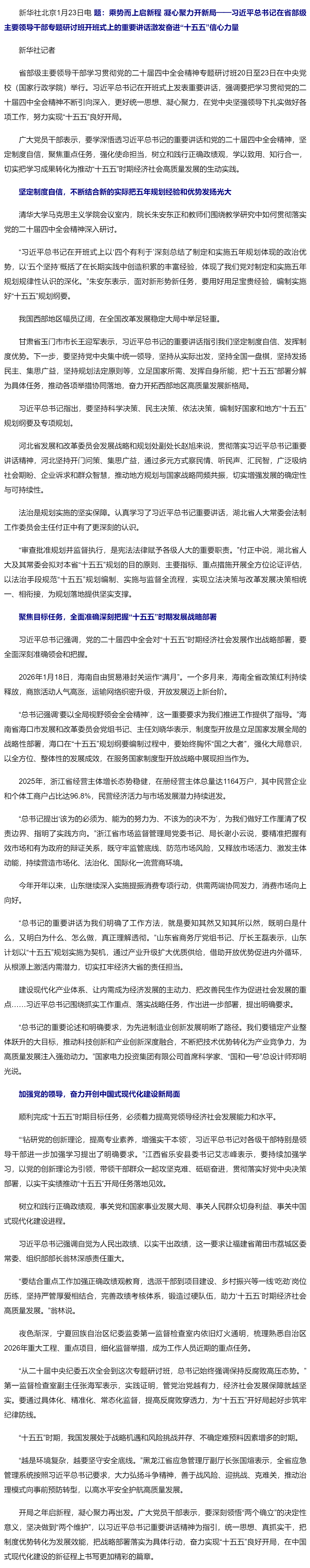 乘勢而上啟新程 凝心聚力開新局——習(xí)近平總書記在省部級主要領(lǐng)導(dǎo)干部專題研討班開班式上的重要講話激發(fā)奮進“十五五”信心力量