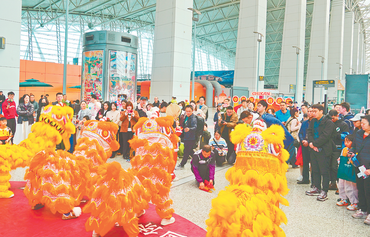 ????□文/圖 江門日報記者 李銀換????“咚咚咚……”清脆的膠凳敲擊聲劃破廣州白云國際機(jī)場(以下簡稱“白云機(jī)場”)T1航站樓的喧囂,近日,“請到江門過大年”快閃活動在此上演。鶴山小醒獅表演、民國風(fēng)情演藝、國家級非遺代表性傳承人送“?!薄T以一場融合僑鄉(xiāng)文化與新春元素的沉浸式體驗(yàn),向海內(nèi)外游客發(fā)出新春文旅邀請函,提前解鎖“江門三點(diǎn)三精彩之旅”的獨(dú)特魅力。