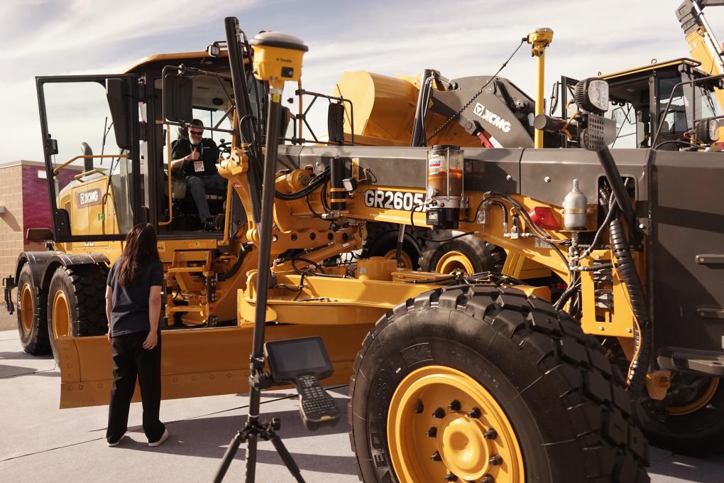 3月4日,在美國(guó)拉斯維加斯工程機(jī)械展上,參觀者體驗(yàn)徐工集團(tuán)的智能化設(shè)備。新華社發(fā)(曾慧攝)