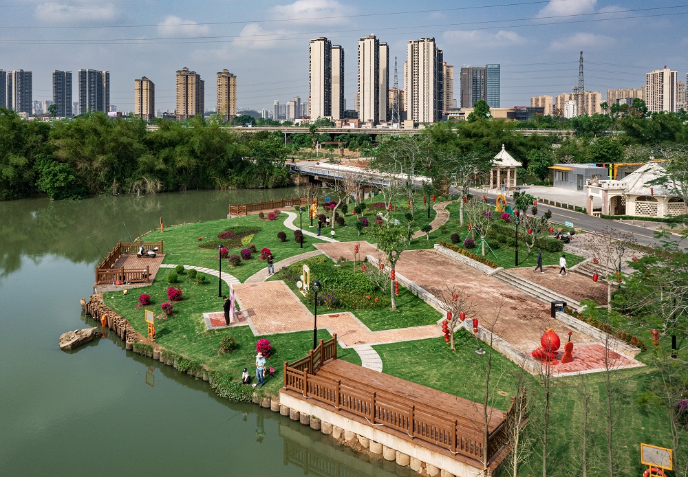 改造后的于桐公園,主要包含休閑活動(dòng)廣場(chǎng)、休閑草坪和集散廣場(chǎng),與碧道建設(shè)相結(jié)合,展現(xiàn)“水清岸綠、水草豐美”的生態(tài)風(fēng)貌。