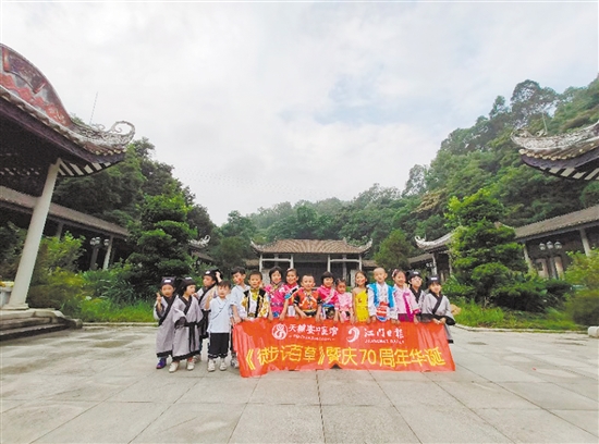 “老師,這是淡竹葉嗎?”“老師,這是海金沙嗎?”10月13日上午,16名身著傳統(tǒng)民族服裝和中醫(yī)服的小朋友,在天輔安中醫(yī)館中藥師李金英和兩名中藥組長的帶領(lǐng)下,來到雞爪山徒步識百草。
