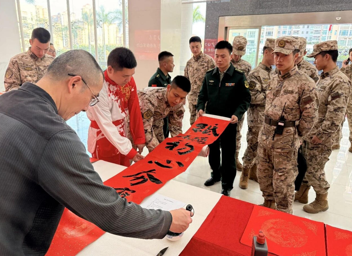 一抹“國防綠”,添彩中國年!江門各地?fù)]春活動送出國防春聯(lián)近4萬副