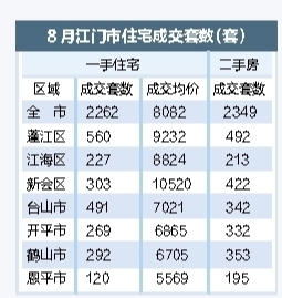 8月江門(mén)樓市企穩(wěn)回暖 一手住宅量?jī)r(jià)齊升